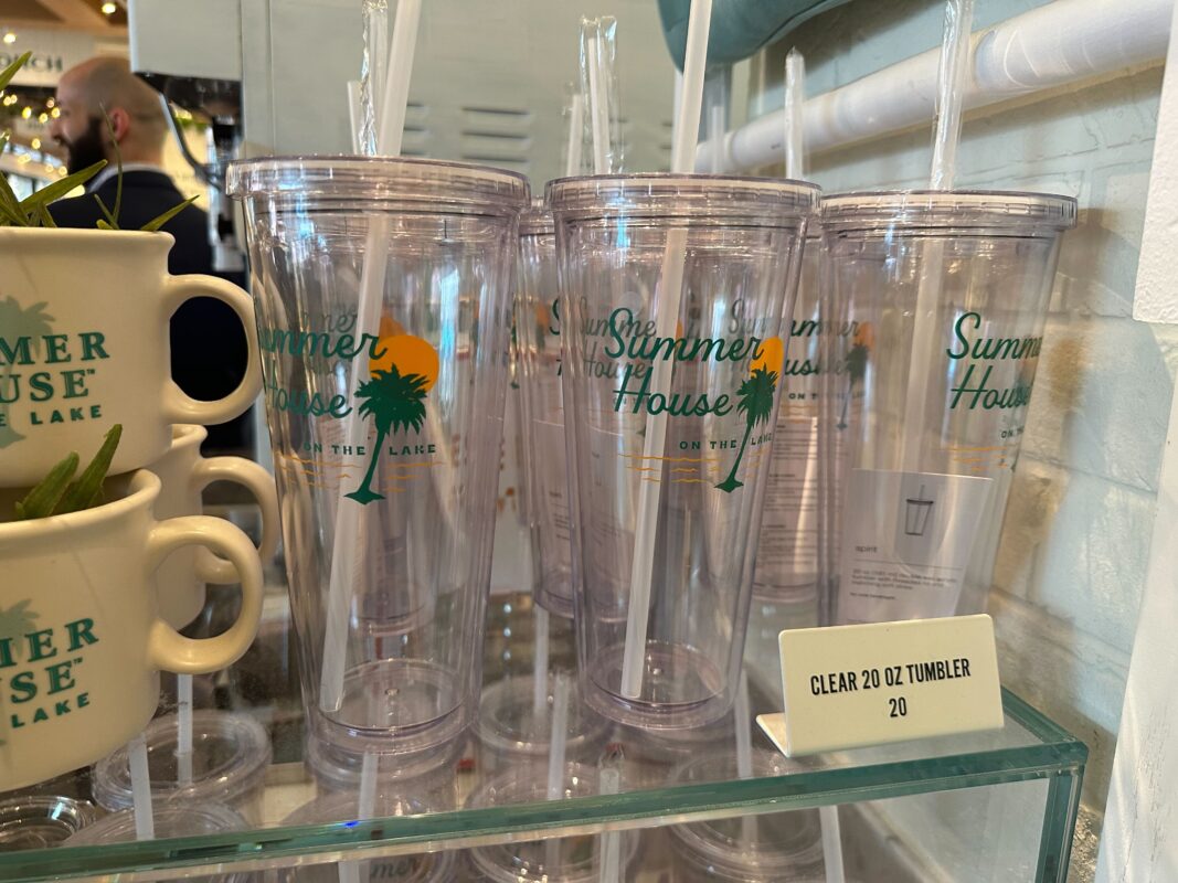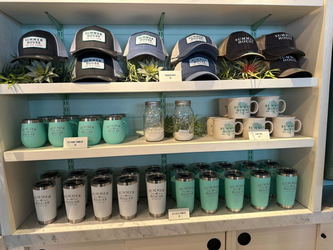 Summer House-branded merchandise includes T-shirts, bucket hats, mugs, and tumblers.