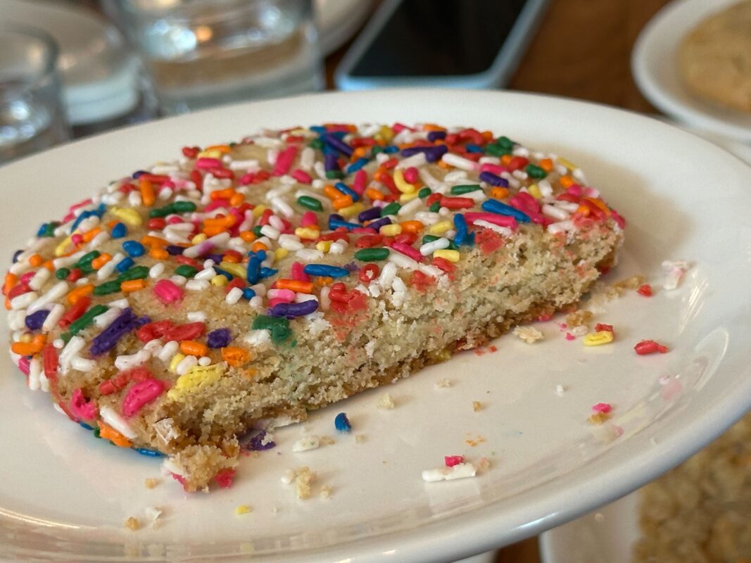 The Peanut Butter cookie was probably our favorite, followed closely by the Krispy Chocolate Chip and Sea Salt Chocolate Chip cookies. We also loved the Oatmeal Scotchie and Vegan Snickerdoodle. The Fudge Bomb and Birthday Cake were our least favorites. There are plenty of other cookies on the menu that we didn’t try, plus bars and pies that we’ll try another day.