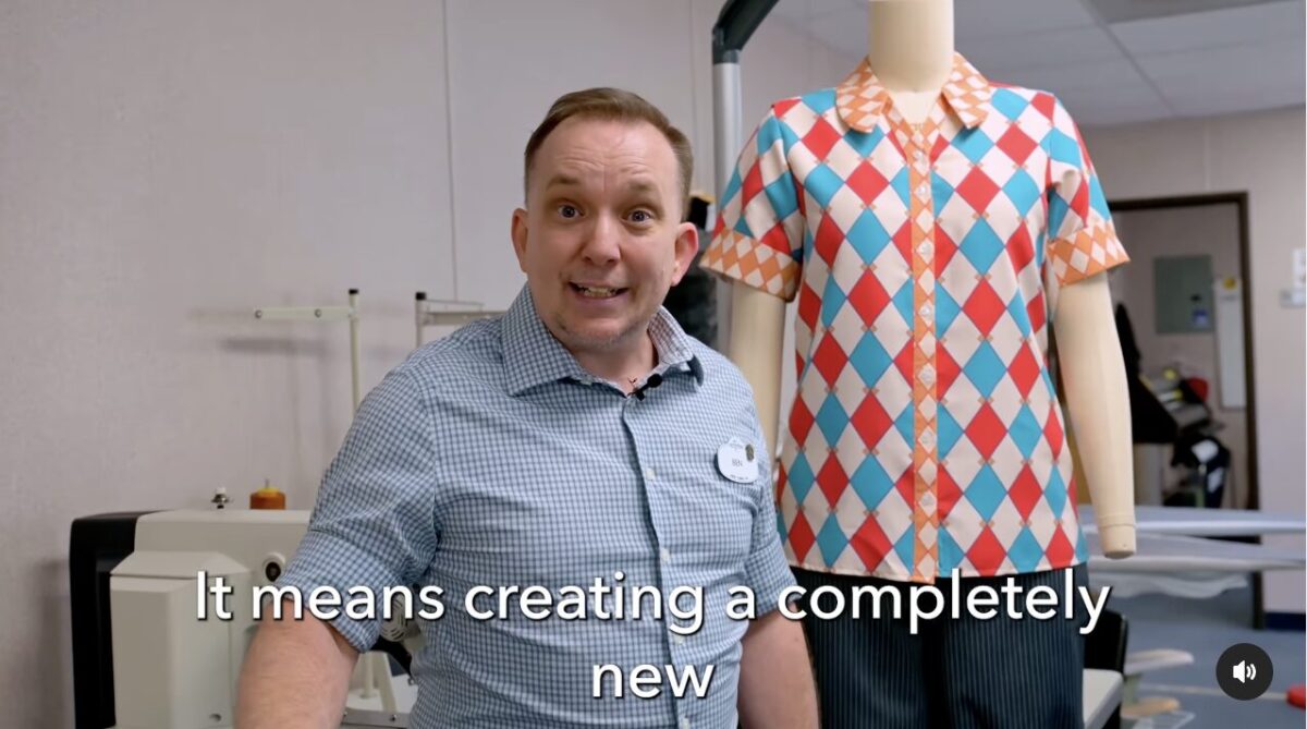 A Team Member also showed off this colorful diamond-patterned shirt. It’s not clear if this is a new Epic Universe Team Member costume but we don’t recognize it from anywhere else in Universal Orlando Resort. It’s white, red, blue, and orange.