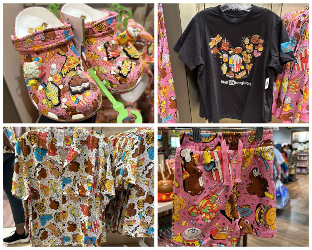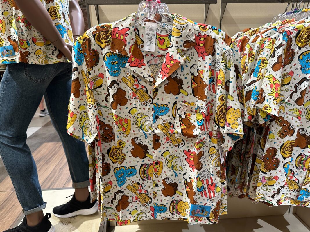 We also found this Disney Eats button-up shirt. It has a white background and an all-over print of the Disney Eats art, matching the Crocs and many other items in the collection.
