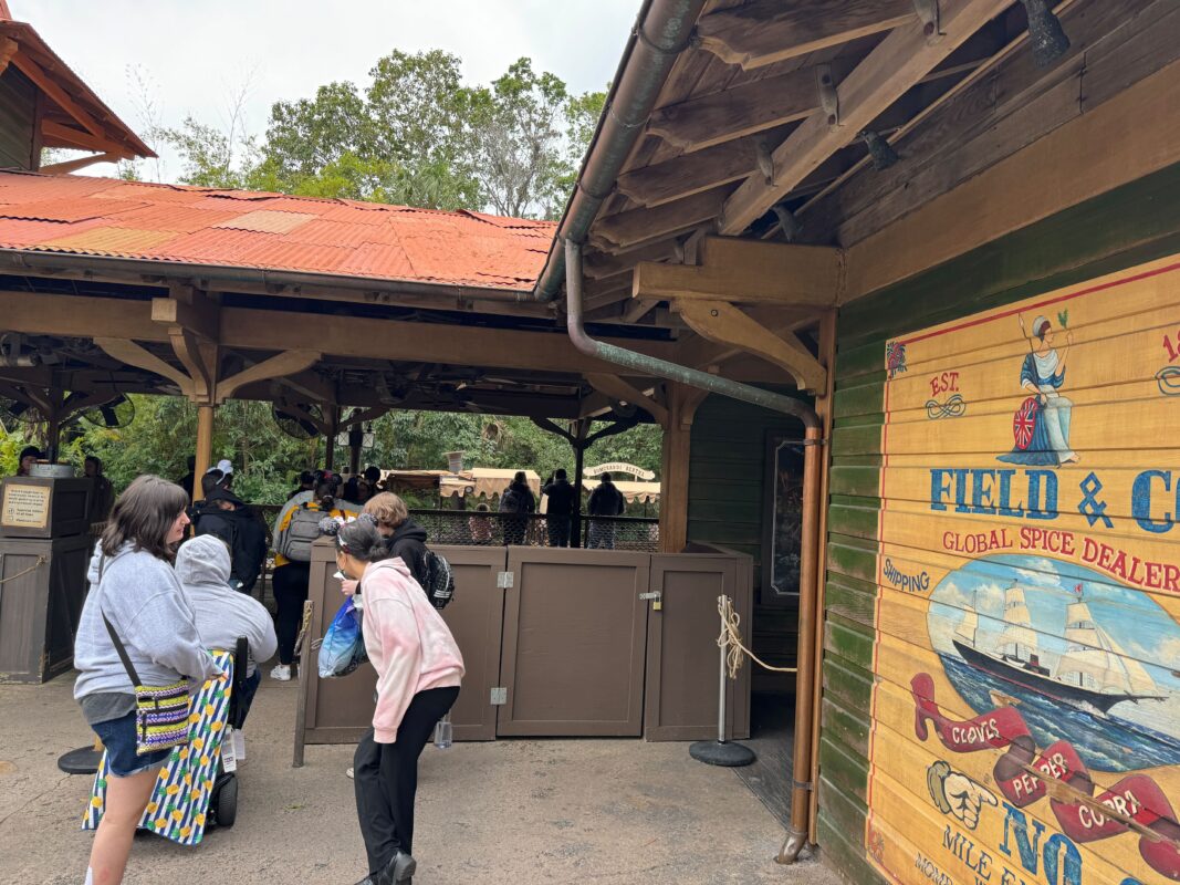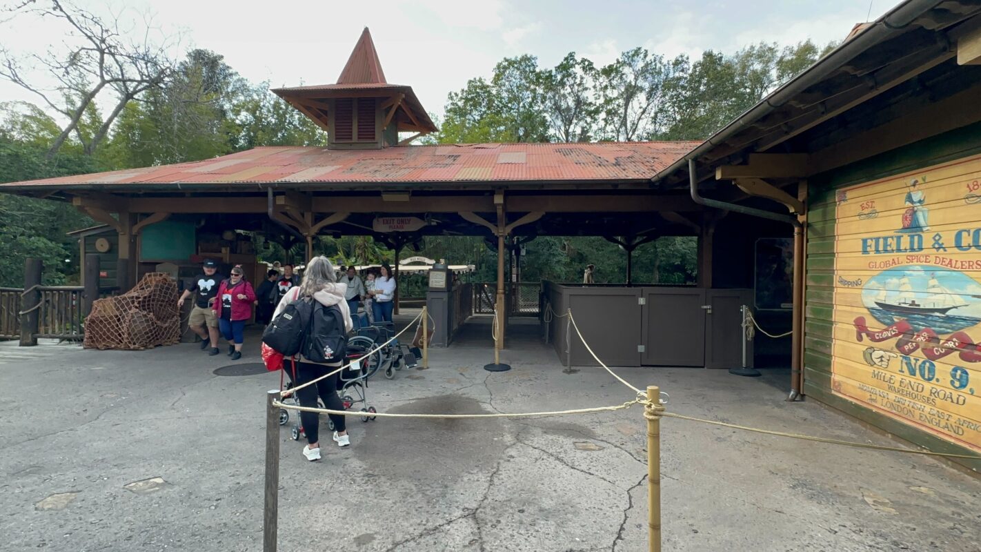 This blocked section of the queue is usually where guests using wheelchairs would enter. They are being redirected around the walls during construction. Jungle Cruise has a wheelchair-accessible boat or guests can transfer from their wheelchair/scooter into a seat on the ride.