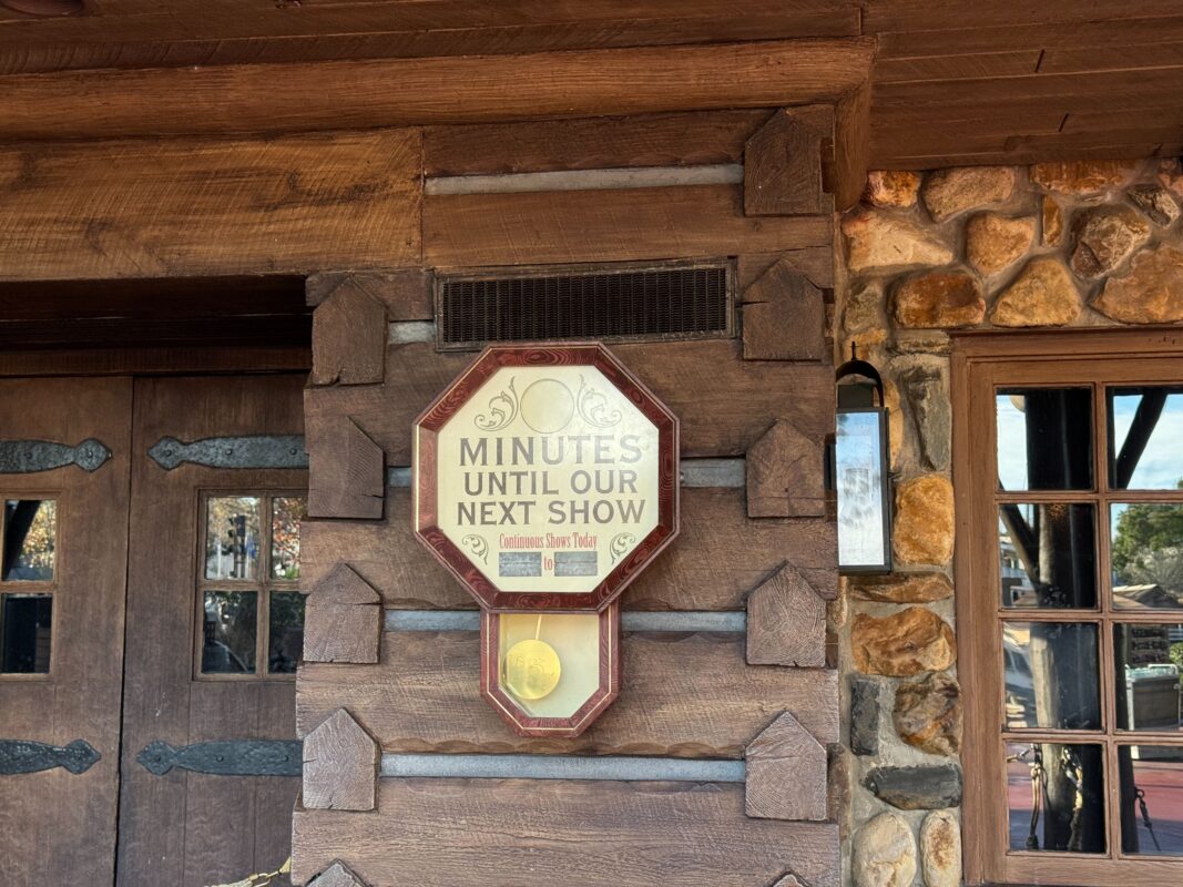 At first, the “__ Minutes Until Our Next Show” sign was still in place, but Cast Members altered it while we were there.