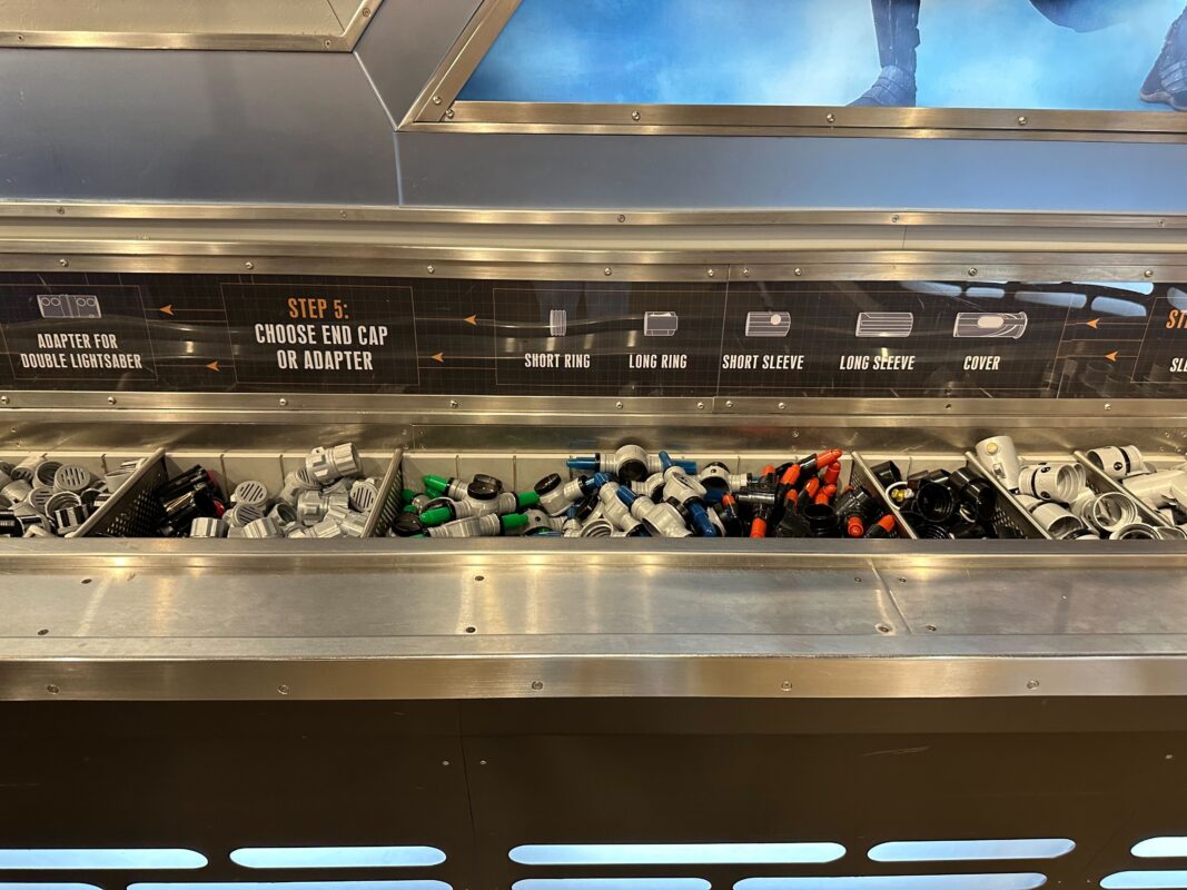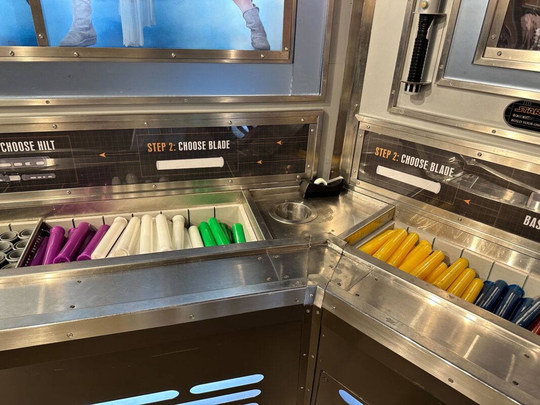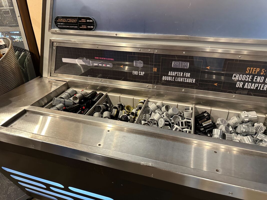 Now, guests can once again peruse the full selection of parts by themselves, choose their parts, try different combinations, and build their lightsaber without Cast Members facilitating. Cast Members are of course still on hand to help guests and explain the process as necessary.