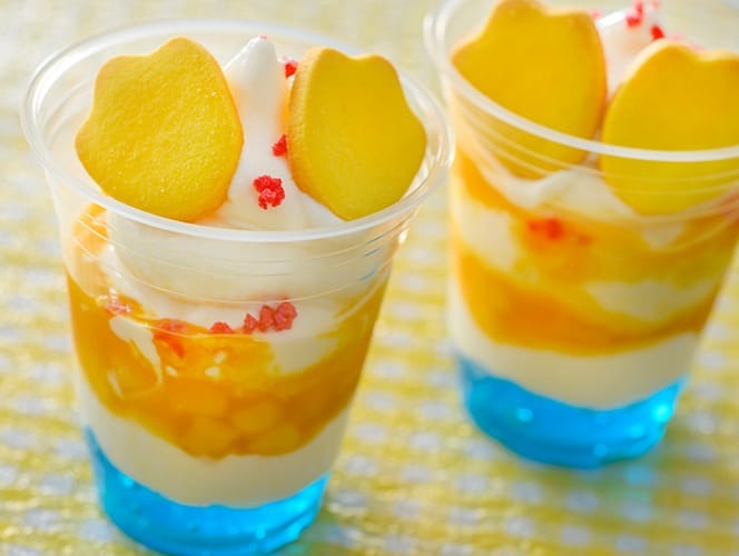 Ice Cream Cones will have a special whipped cheese and mango sundae made to look like Donald is sticking out upside-down from the cup. It has layers of blue jelly, diced mango, and whipped cream cheese.