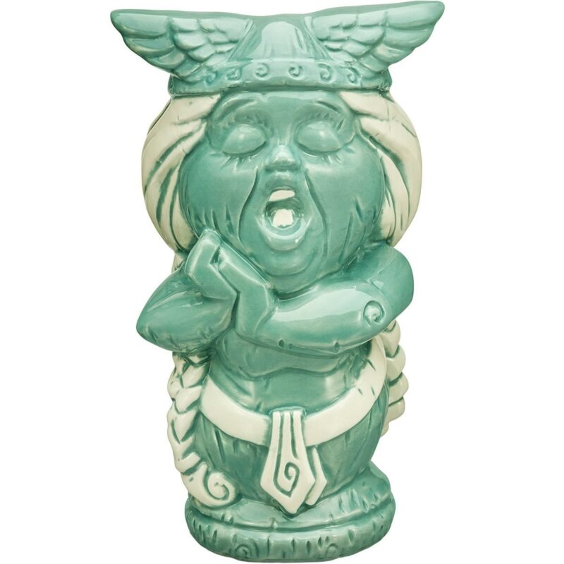 The final new arrival in the Haunted Mansion tiki mug lineup is the female Opera Singer ghost from the graveyard sequence of the attraction, represented in a ghostly shade of light green with white accents. The mug can hold 13 ounces of liquid and is approximately 7 1/2 inches tall and 4 1/4 inches wide.