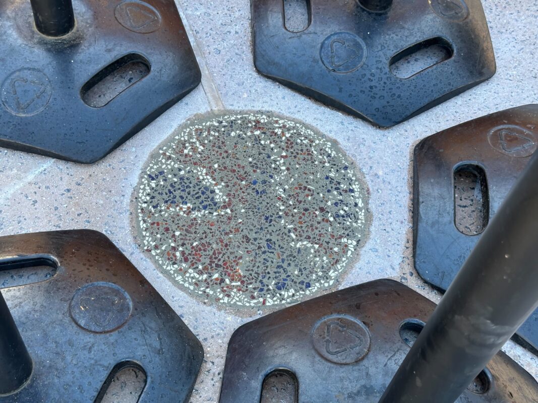 Upon closer inspection, it is another of the various mosaics found that have been added over time to Planetary Plaza. It’s likely that this is a new addition and needs time to set before being walked upon.