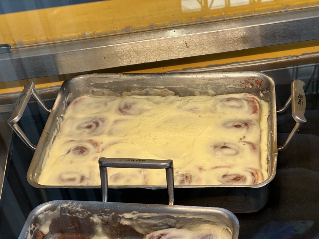 Over at the dessert station, cinnamon rolls have replaced the bread pudding. These are great. They remind us of Cinnabon or a similar cinnamon roll you would have gotten at a mall in the 1980s.