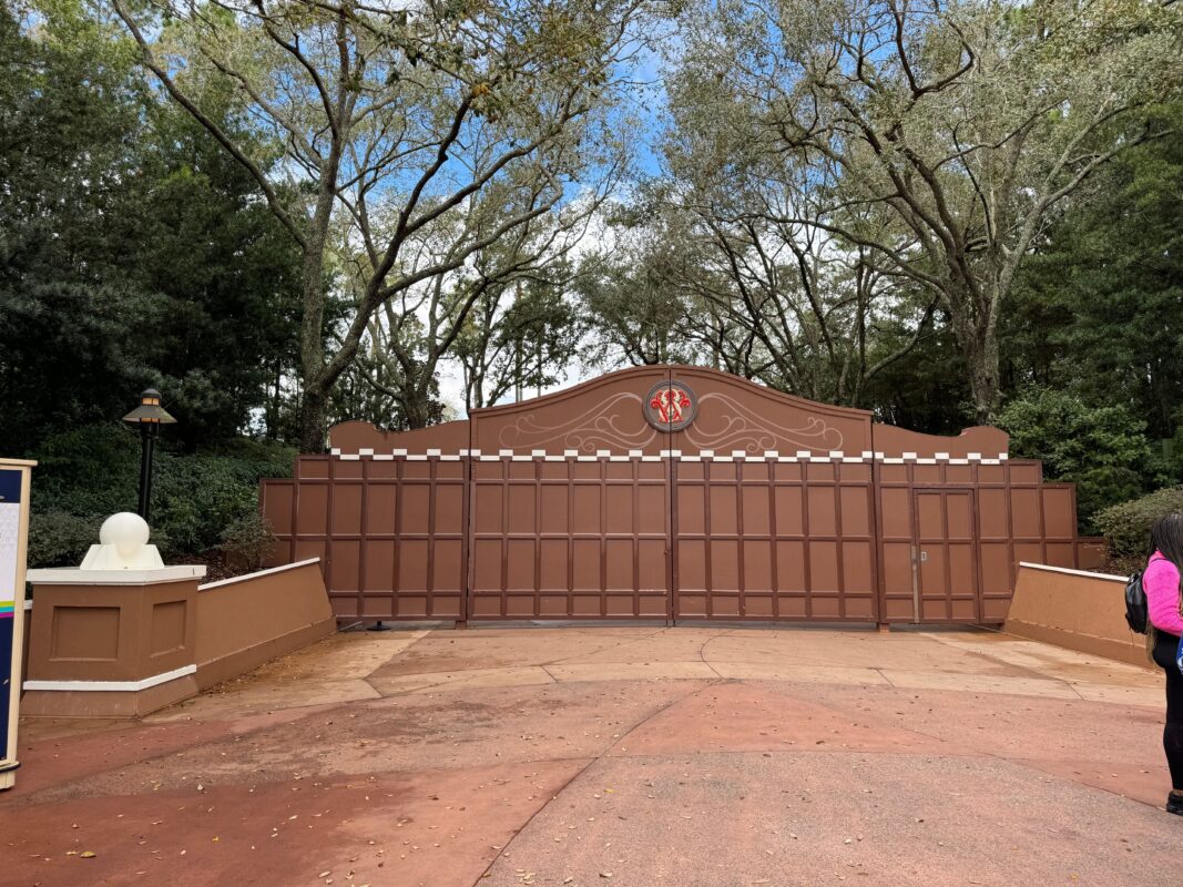 The doors now have a dark wood appearance with moulding details that make them look well-suited to the theming in the U.K. Pavilion.