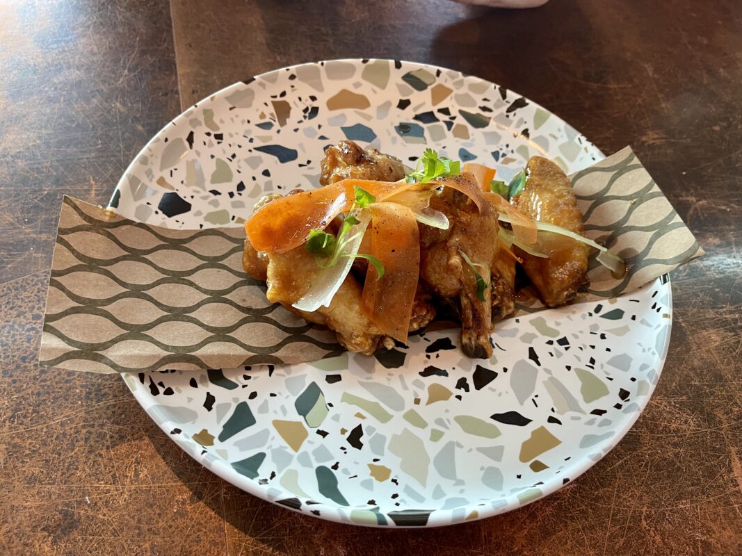 But when it came time to tasting the wings, we didn’t note much spiciness at all. The dish includes six wings for $15, each coated in a glaze that leans more towards sweetness than heat. The wings are extremely sticky, which reminded us of the wings at Kona Cafe at the Polynesian.