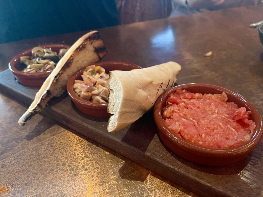 However, opinions varied on the accompanying elements: while the olives met expectations, they didn’t stand out; the tomato spread, while good, fell short compared to similar offerings elsewhere. Additionally, the bread appeared to be the same bread used for the aforementioned Ham and Cheese Bocadillo, reminding us of what we gave up to get this new menu.