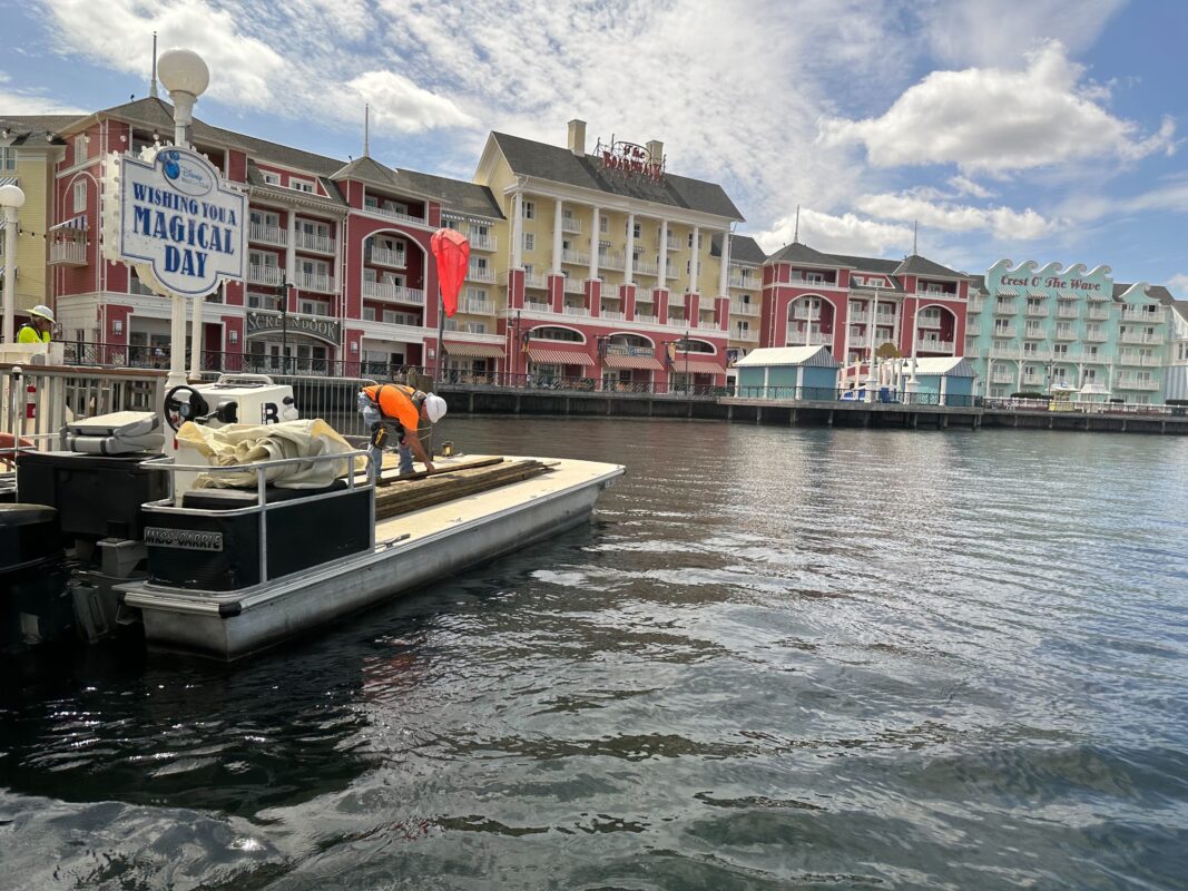 Crews have recently refurbished the dock at Disney’s BoardWalk in Walt Disney World. The dock serves watercraft traveling from EPCOT and other nearby destinations.