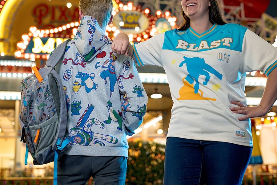 The “Toy Story” collection includes a Toy Story Family jersey, adult zip-up hoodie, new backpack, and themed bag.