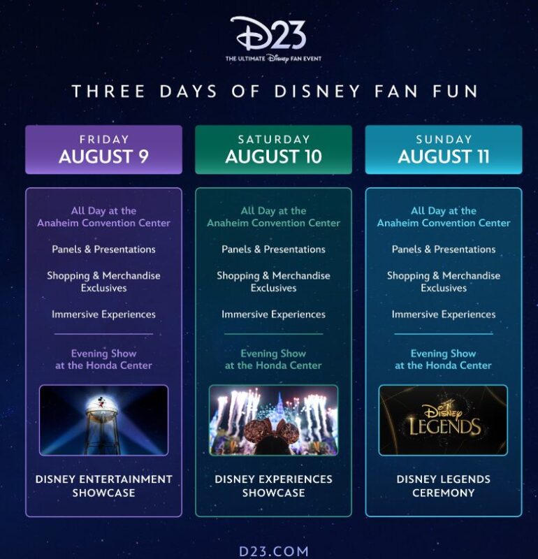 An image showing the planned offerings for D23: The Ultimate Disney Fan Event. WDWNT Daily Recap 3-19-24