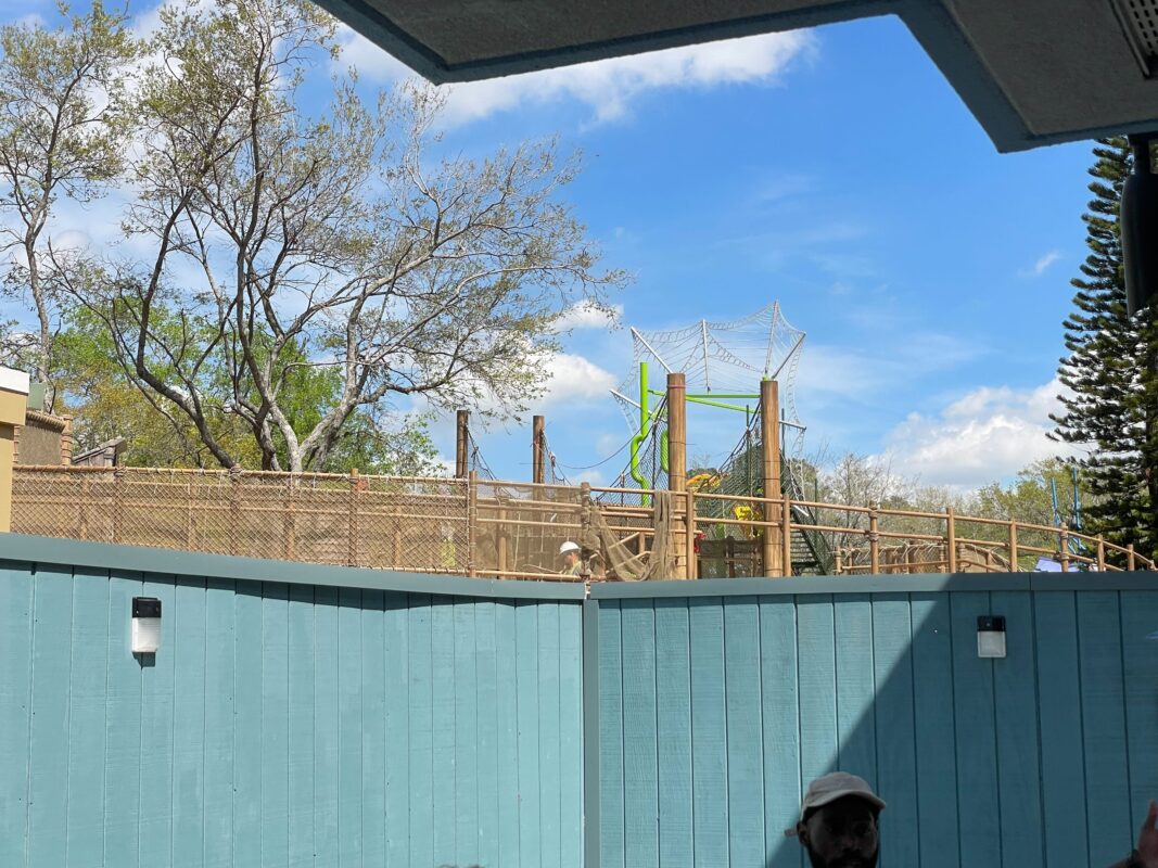 More bridges and platforms have been installed in the play area behind Shrek’s Swamp. There is mesh netting over the railings around part of the play area. A rope bridge was previously installed.