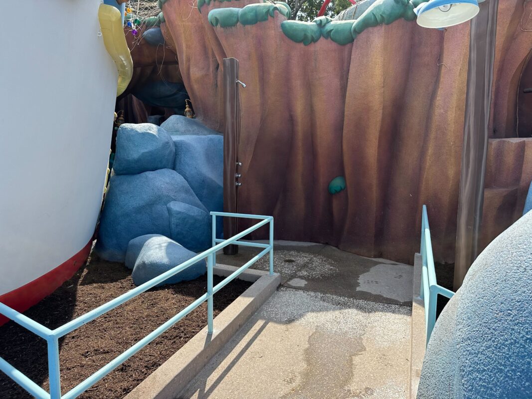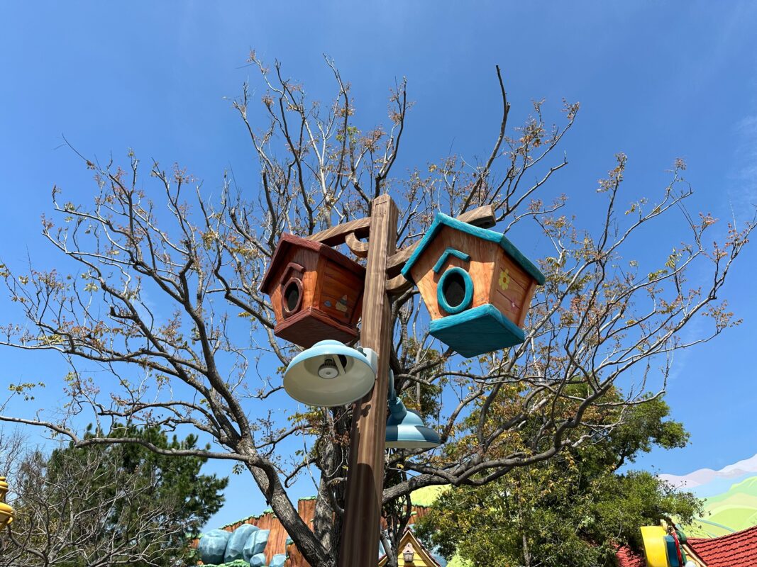 Cameras in birdhouses overlook the play area. They reminded us of the camera technology at Journey of Water Inspired by “Moana” in EPCOT, which senses guest movement for interactive elements. ButDisneyland Cast Members stated that these cameras are just for surveillance.