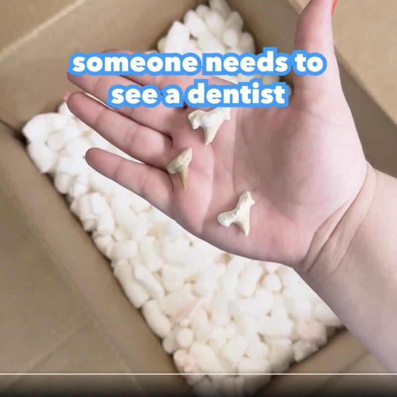 A handful of shark teeth represents “Jaws.”