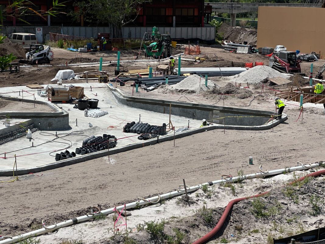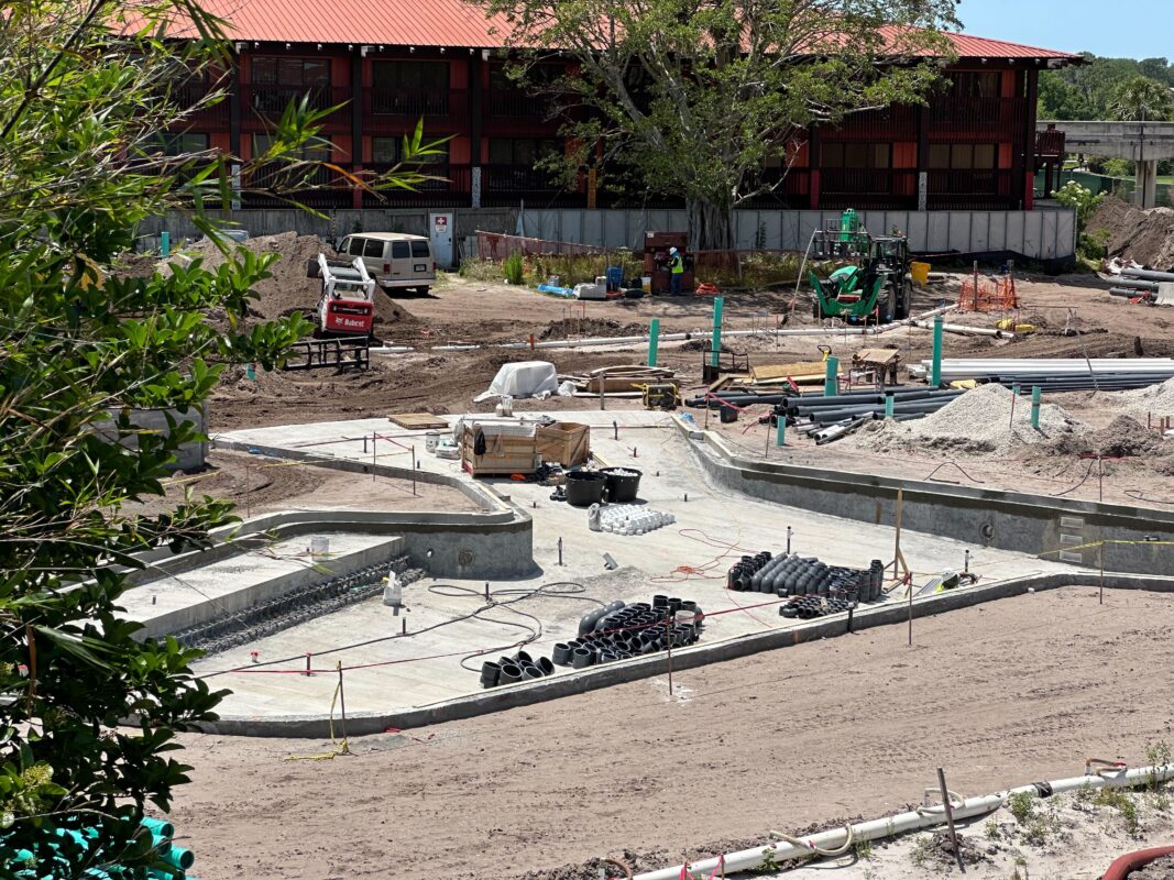 From the Walt Disney World Monorail, we saw more temporary fencing running along the sidewalk that leads to the DVC tower.