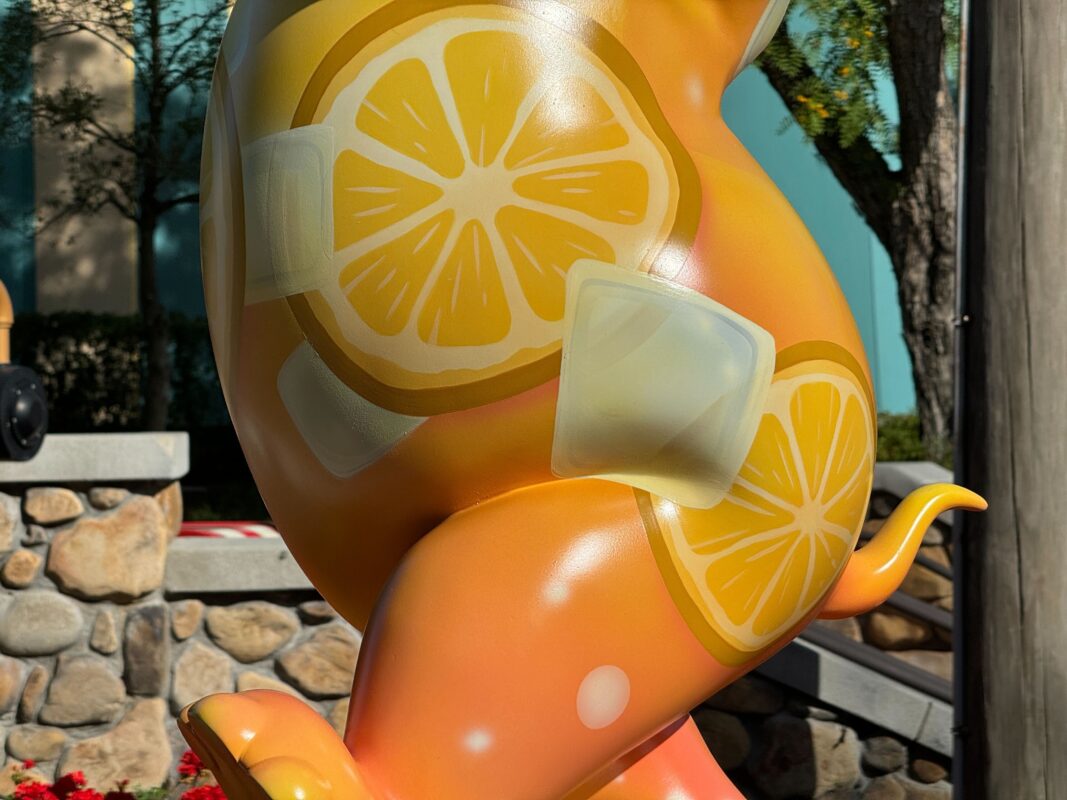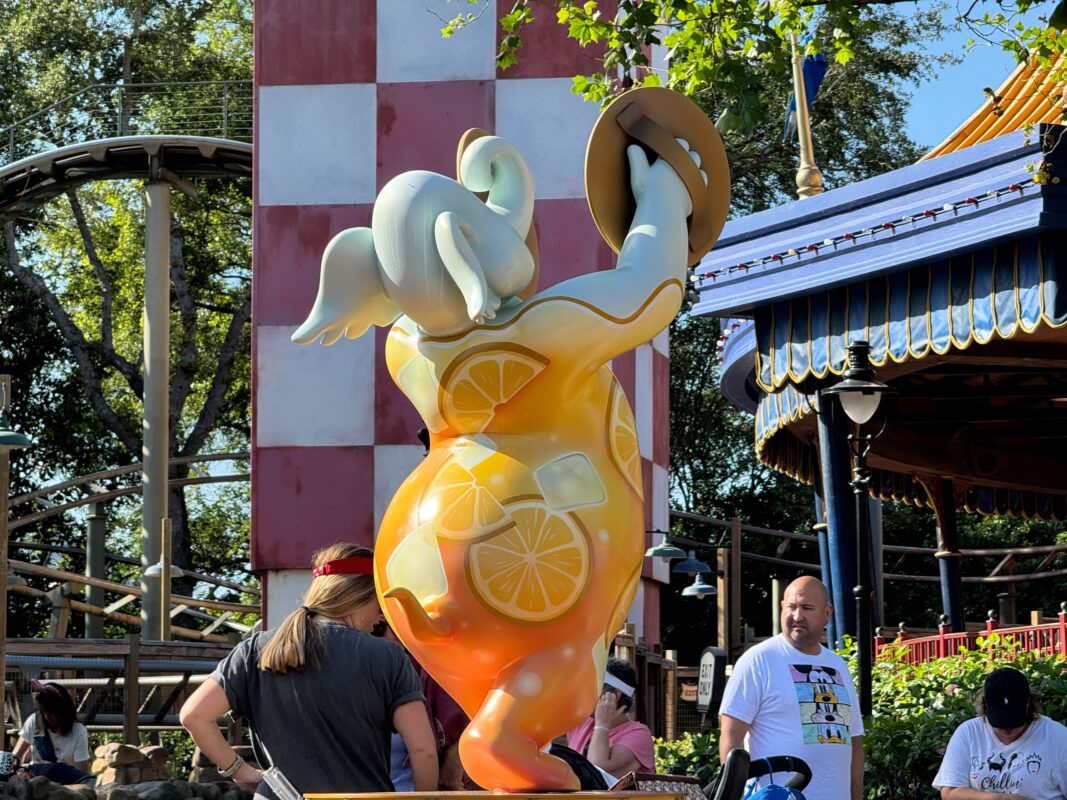 The citrus statue is located near the Casey Jr. Splash ‘N’ Soak Station.