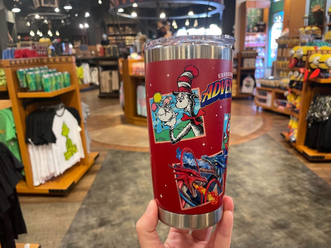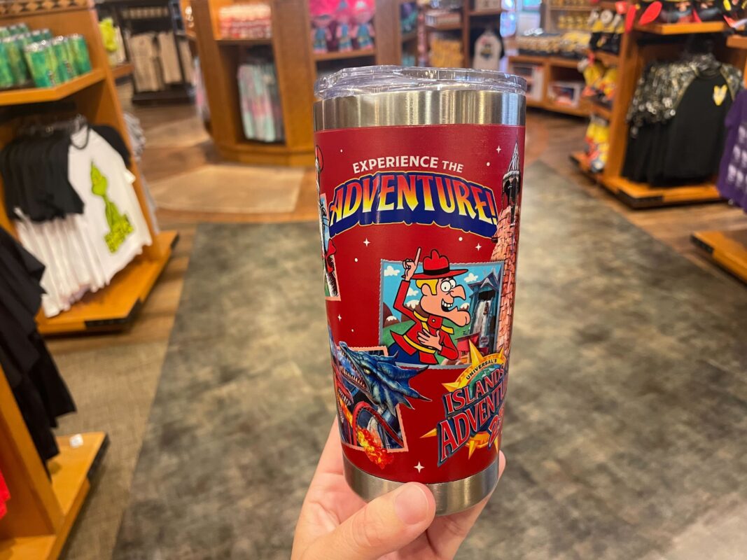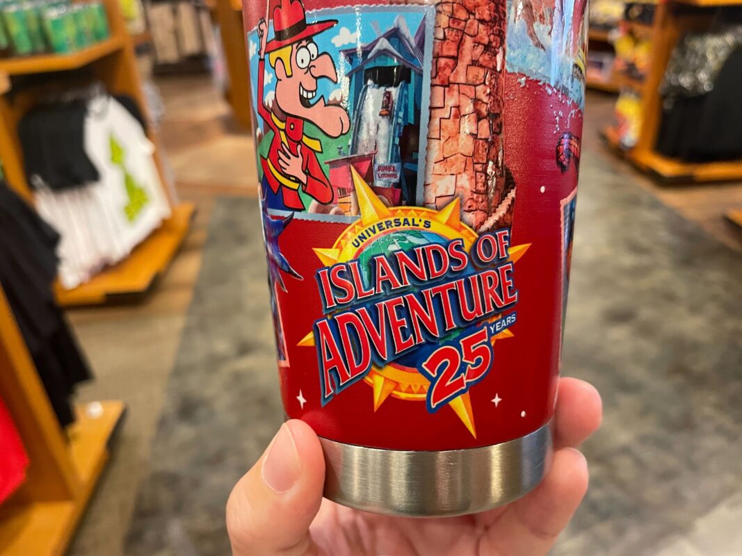 The Toon Lagoon art and Islands of Adventure 25th anniversary logo on the tumbler.