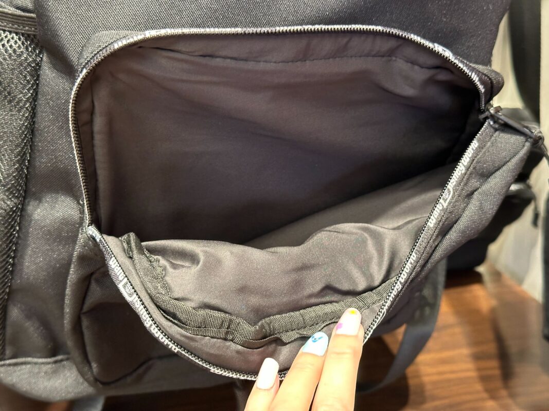 We spotted the backpack in Mickeys of Hollywood at Disney’s Hollywood Studios. A large Walt Disney World logo is on the front and “Walt Disney World” is printed on the small zip pocket.