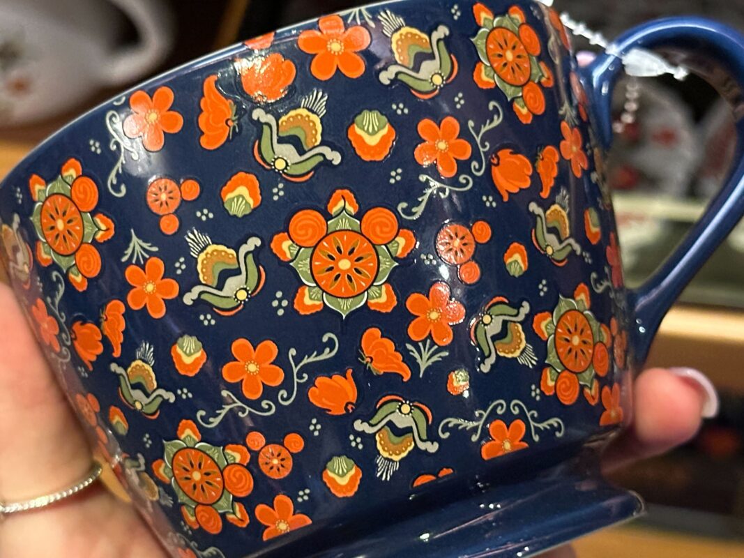 A small floral design is opposite the large one with “EPCOT World Showcase” in orange lettering. This is microwave-safe but hand wash only.