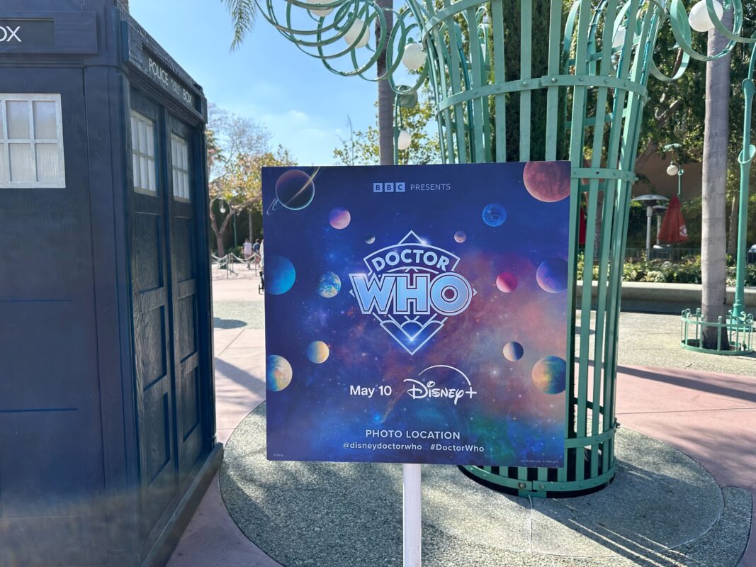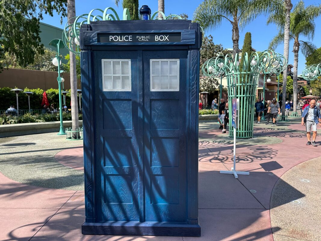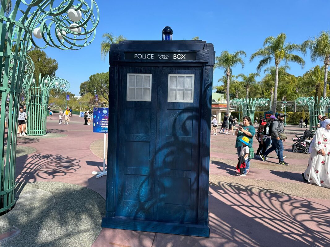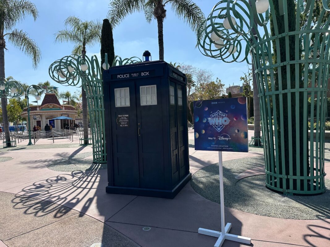 The TARDIS from “Doctor Who” has materialized on the Disneyland Resort esplanade near Downtown Disney District ahead of the show’s upcoming season premiere on Disney+.