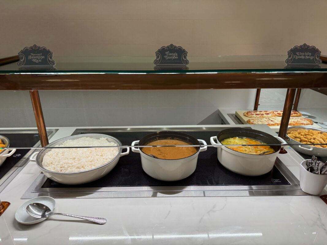 Jasmine rice and chicken noodle soup were on the line beside Tiana’s Gumbo.