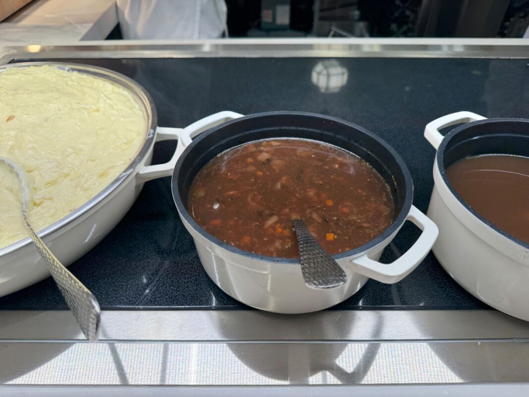 The mashed potatoes were great. They were somewhat “gloopy,” but the flavor was amazing. They were a lot like the mashed potatoes served on the Galactic Starcruiser. There was no gravy, but we put the Hunter sauce on the potatoes, and it was an excellent pairing.