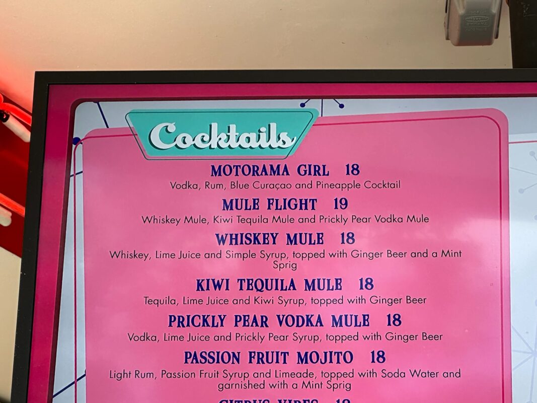 Named for the group that Flo was once a part of, the Motorama Girl is a good frozen cocktail and is exactly what you think it is. We think it’s much more drinkable and a better value than the Blue Raspberry Lemonade Cocktail from Smokejumpers Grill. This is still a little expensive, but if you want a refreshing alcoholic beverage for the summer and you’re willing to spend the money, this is a good option.