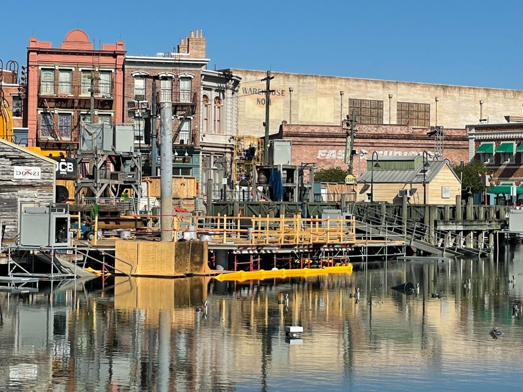 Universal Studios Florida is preparing for a new nighttime lagoon show, expected to debut by the summer. Work has been happening both inside the lagoon and around it for the last few weeks. Let’s take a look at the latest progress.