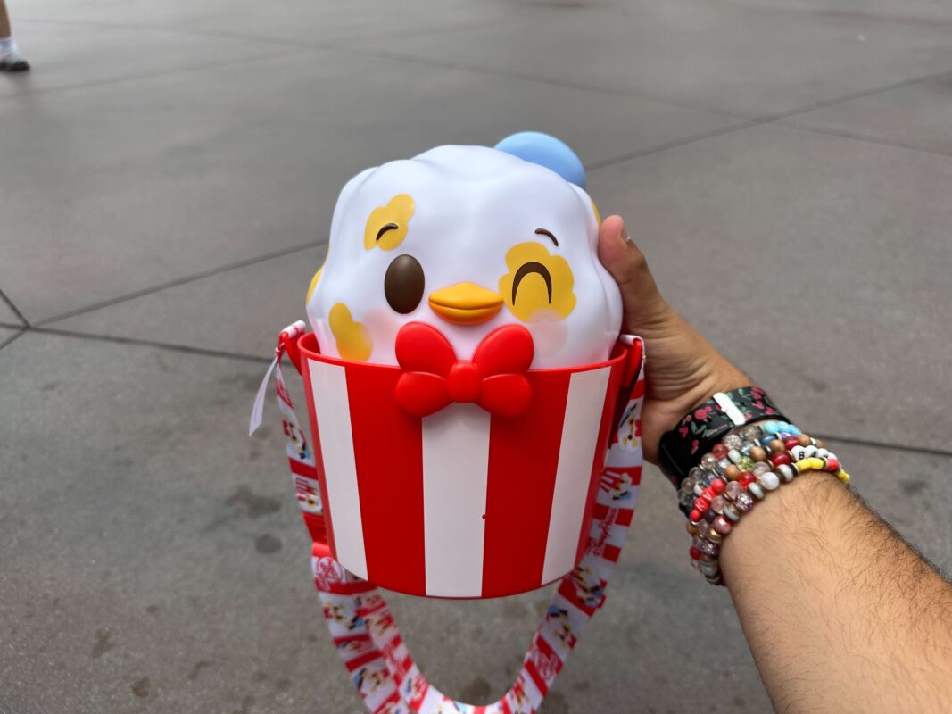 The Donald Duck Munchlings popcorn bucket can be found across the resort at the various snack carts.