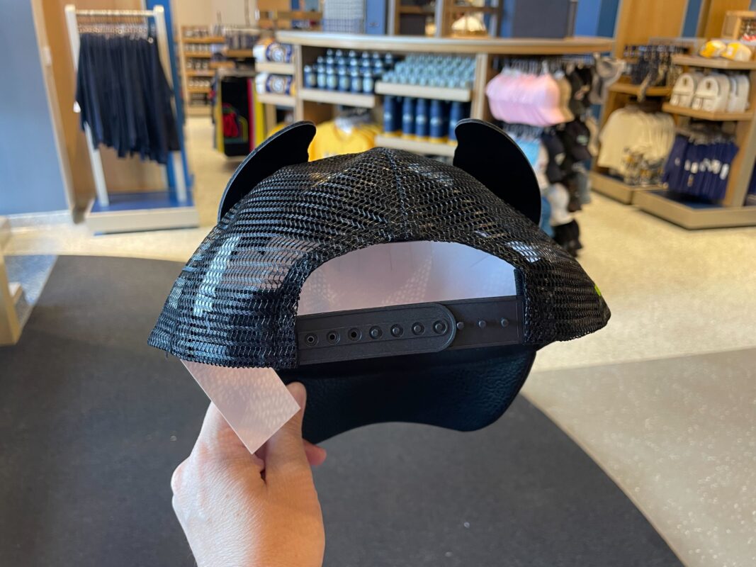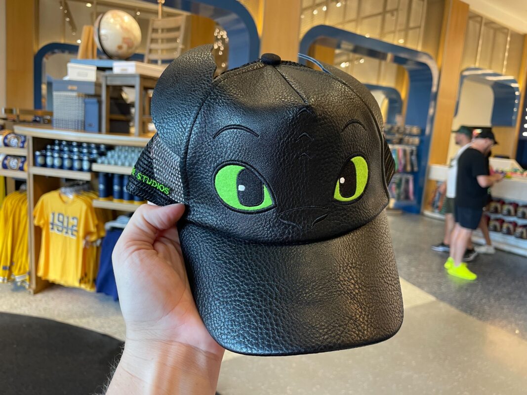 The last new item available is this Toothless pleather ball cap. His bright green eyes are embroidered on the front, with his ears attached at the top.