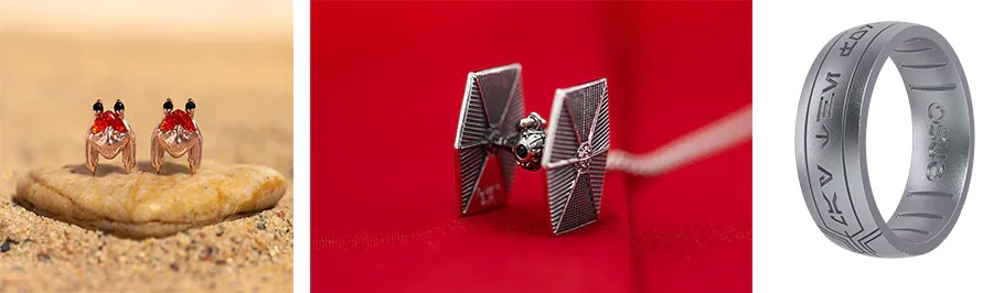 The Jar Jar Binks merchandise continues with these Girl’s Crew earrings. RockLove is offering a TIE Fighter necklace, and Enso Rings has a new May the Force be with You ring.