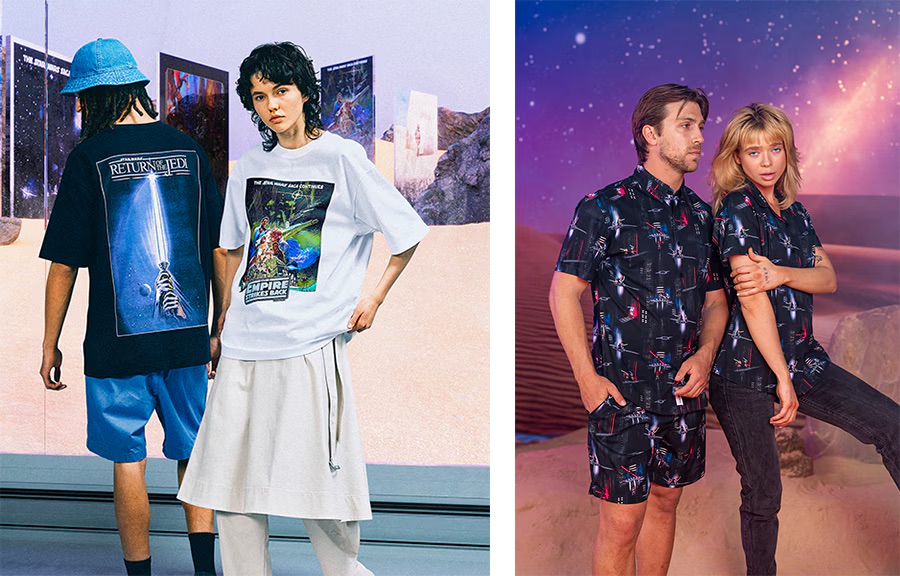 UNIQLO is celebrating Star Wars Day with a new Star Wars: Remastered T-shirt collection (left). RSVLTS gives their spin on “Star Wars: The Phantom Menace” with their “We’ll Handle This” button-up (right).