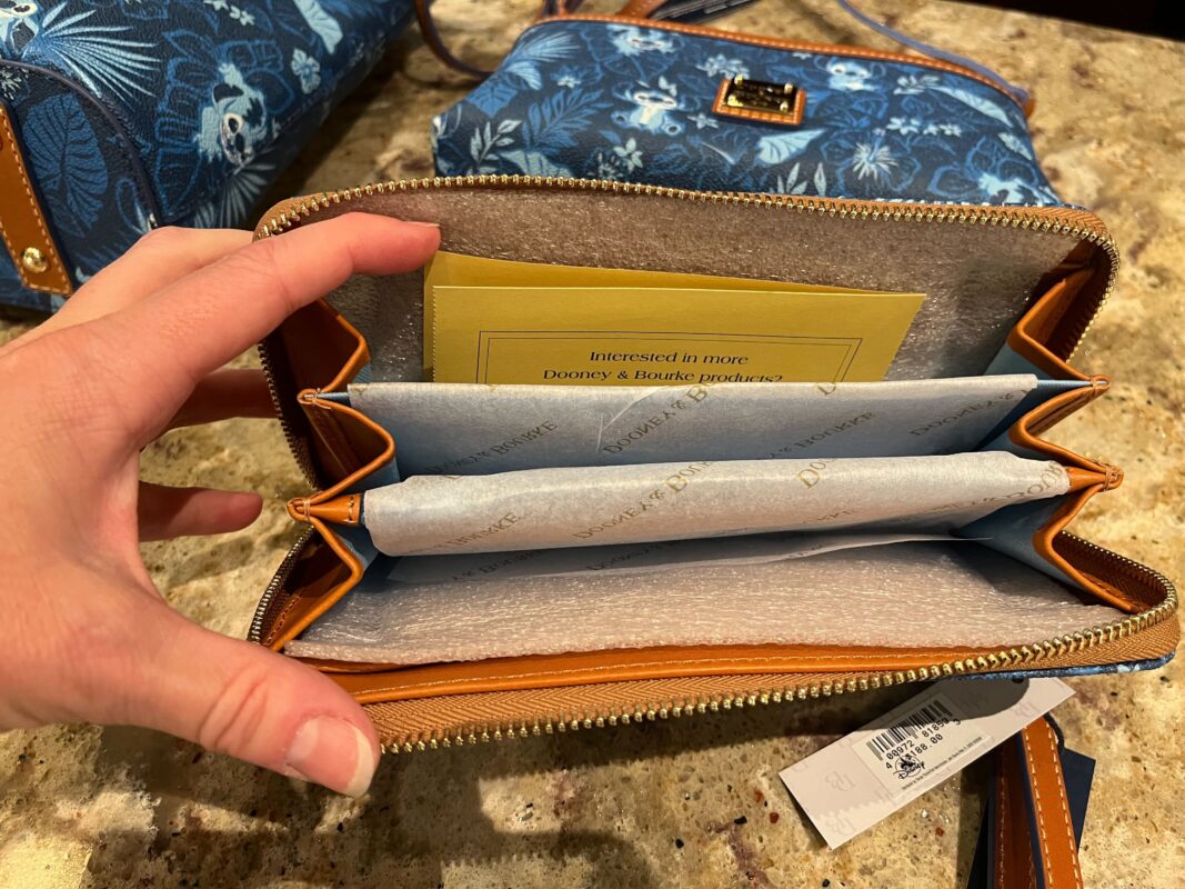 The inside of the wallet is tan and features multiple pockets for everything you need to carry. If you can’t make it to Magic Kingdom, you can also find this wallet for sale online from the Disney Store.