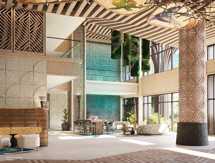 The original concept designs for Disney’s Polynesian Resort featured a prominent tower. Island Tower will complete that vision “while embracing the rich culture from the Polynesian Islands.” The exterior features designs created just for the tower, including a Manta Ray symbolizing freedom, protection, and grace.