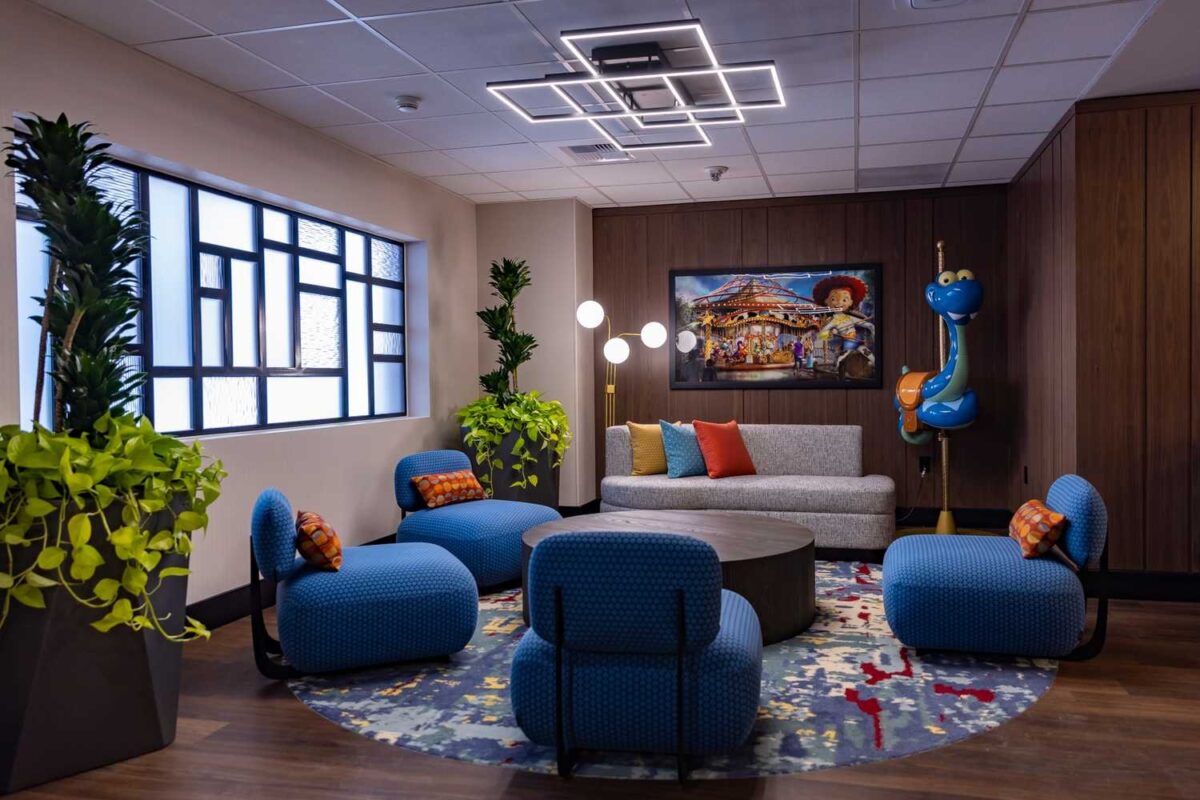 The Creators Club will officially open on May 24, 2024. We got a first look at the Creators Club when the reimagined hotel opened in January. The lounge celebrates the collaboration between Walt Disney Imagineering and Pixar Animation Studios with concept art, maquettes, and posters for Pixar attractions all over the world.