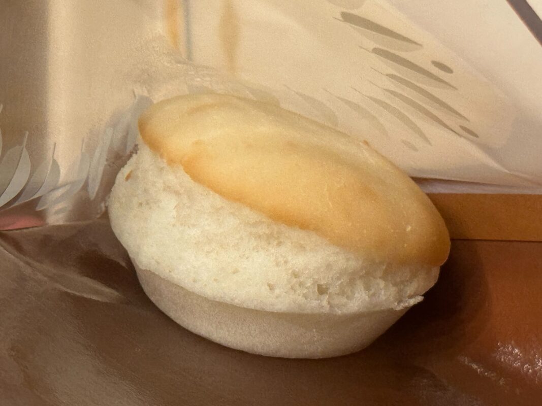 The bread is stamped with a bell image. It’s a nice soft bread. We’re surprised there’s not butter but it’s moist enough on its own.