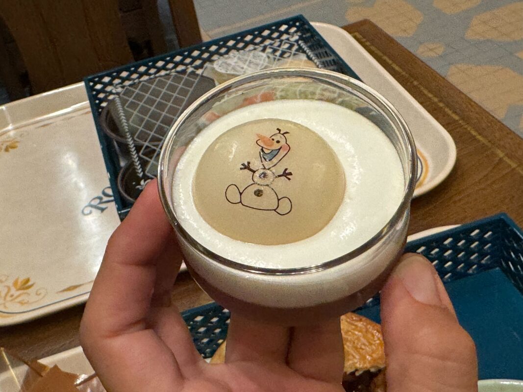 Olaf is stamped on mochi “floating” in the mousse. The mochi has a surprising lemon flavor.