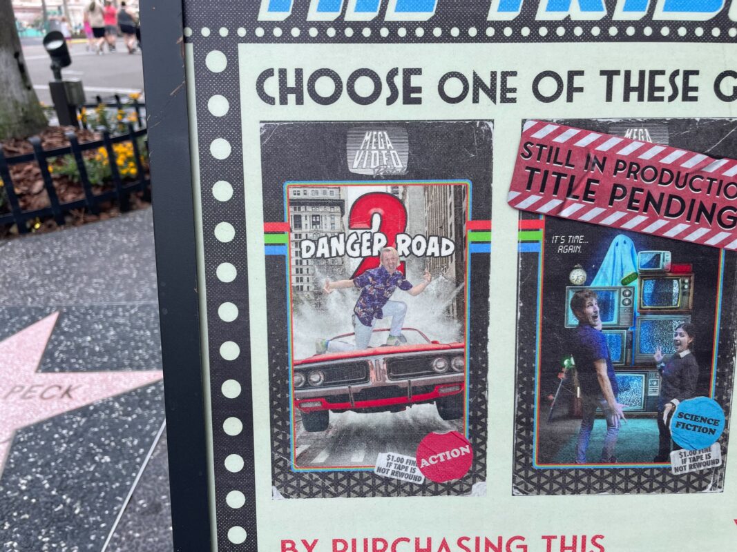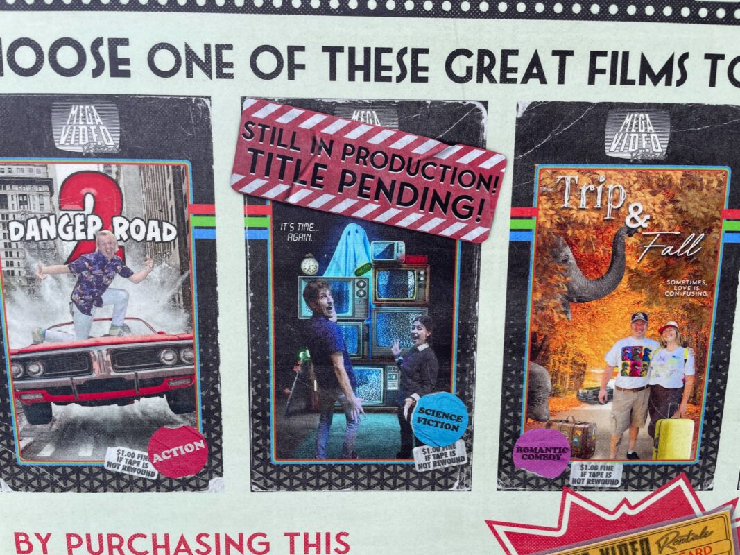 Guests who participate will be placed into a VHS tape poster for a fake retro film: Danger Road 2, Trip & Fall, or Midnight Screaming. The posters can each fit one to four people. They can also include photos of pets but the photo must include the pet’s whole body.
