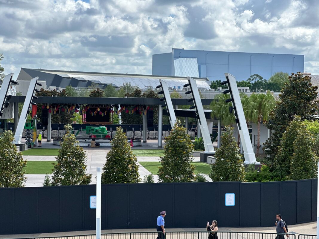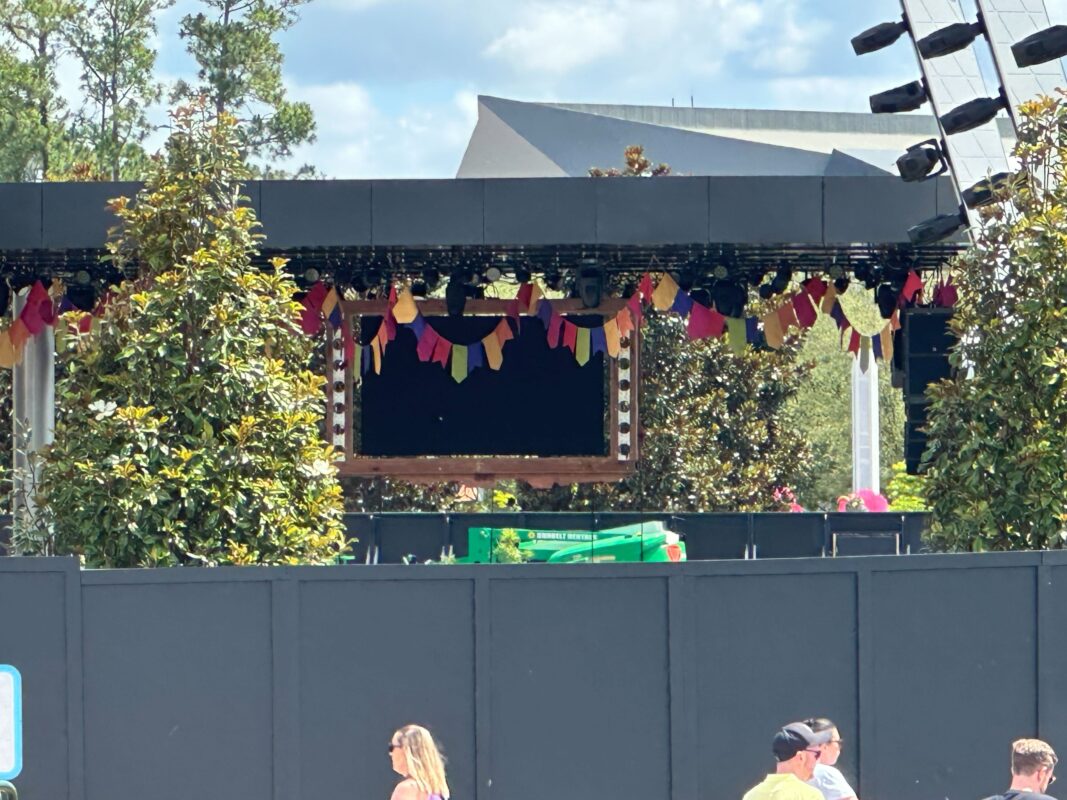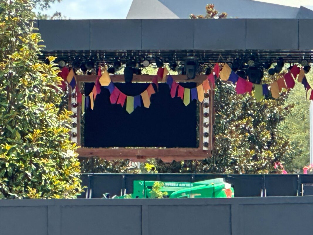 More decorations are up around the CommuniCore Plaza stage for “¡Celebración Encanto!” The show will debut on June 10 with the Hall and Plaza’s opening.