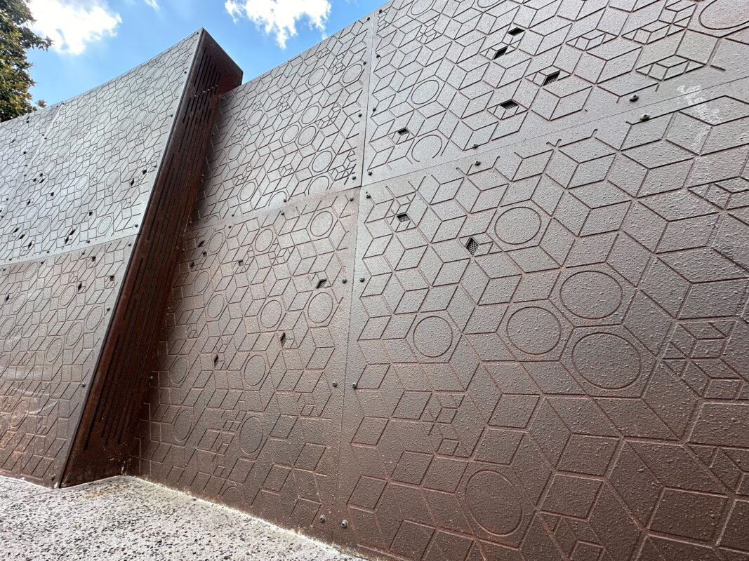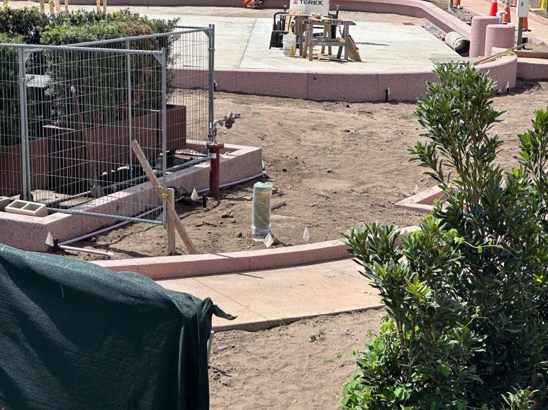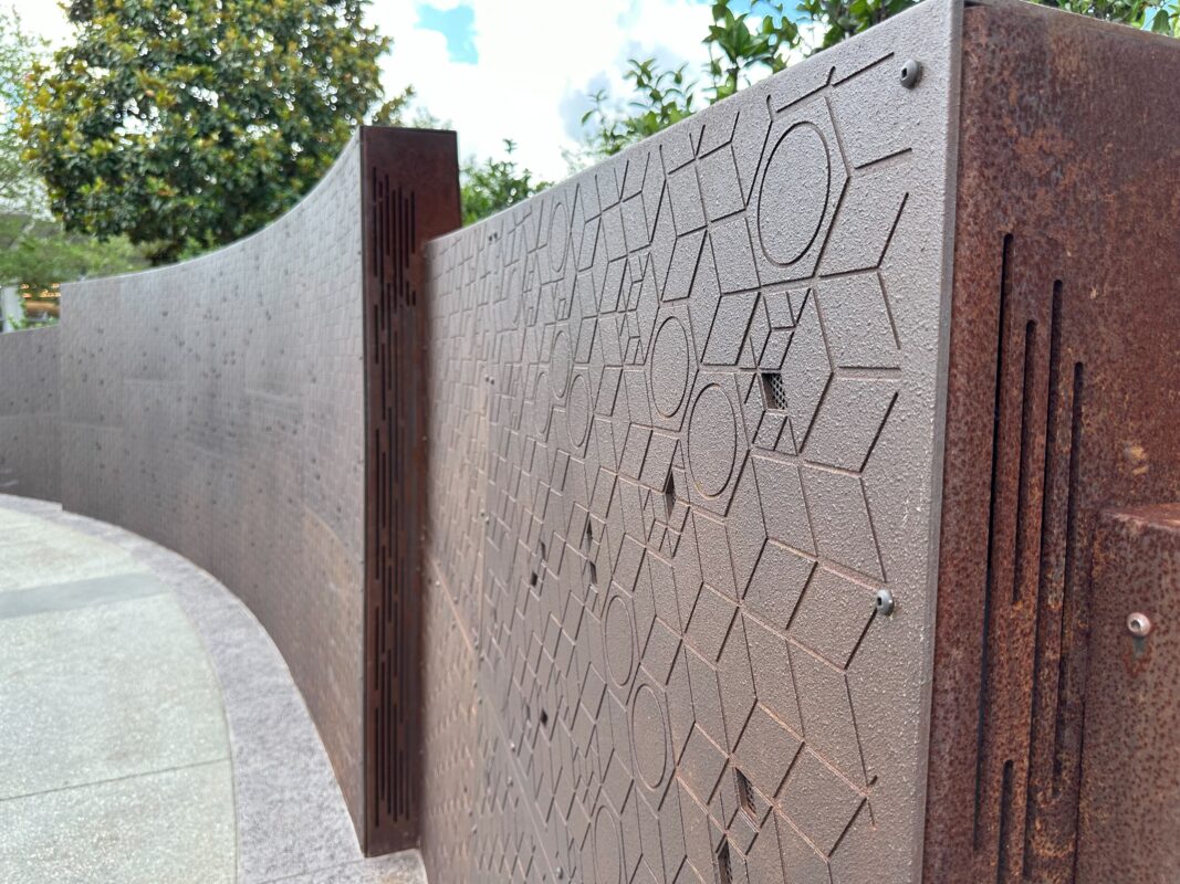 The back wall of the Celebration Garden has finally been revealed. The wall is directly behind Dreamers Point. It’s been blocked by rolling planters since the rest of the garden space opened in December.