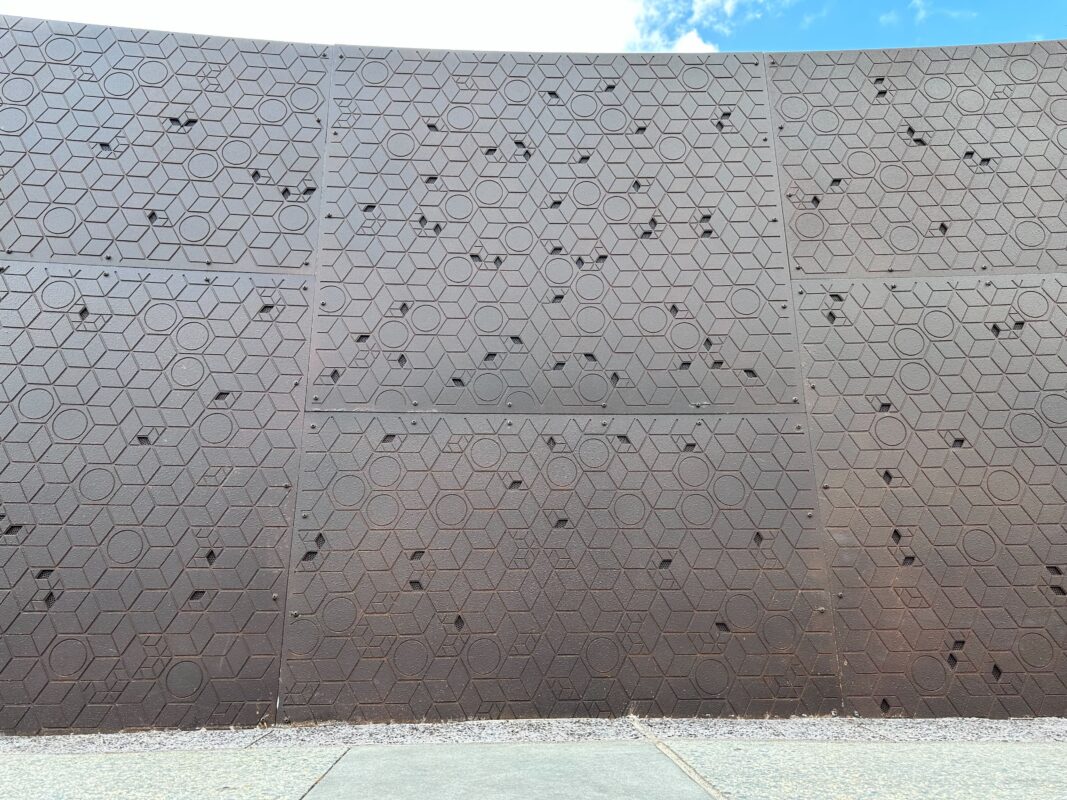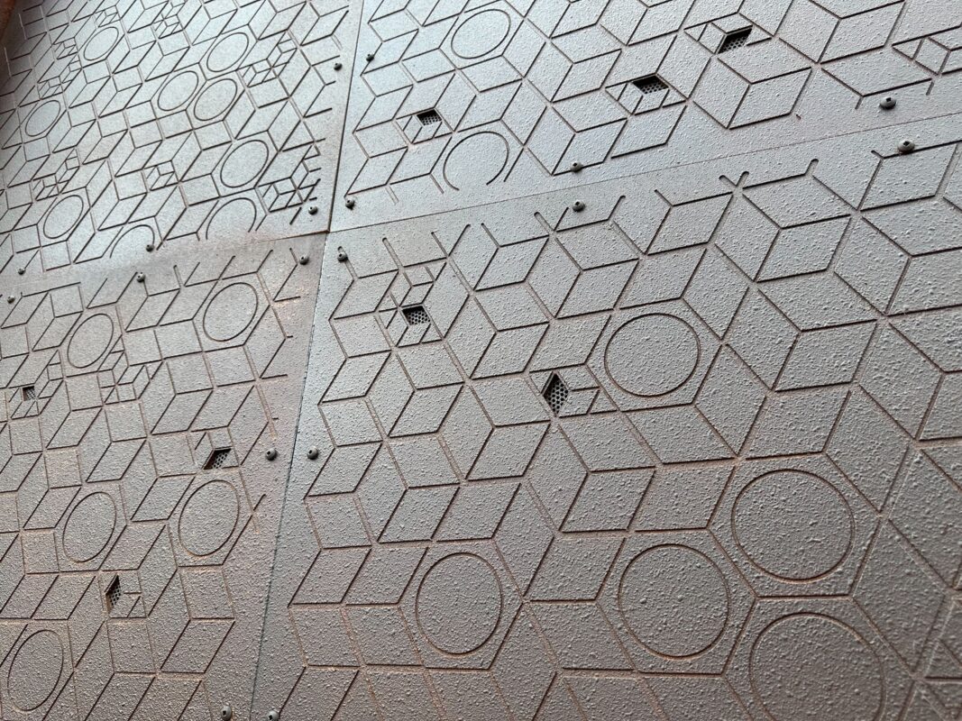 The pattern is reminiscent of other EPCOT architecture like Spaceship Earth.