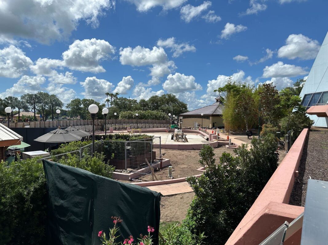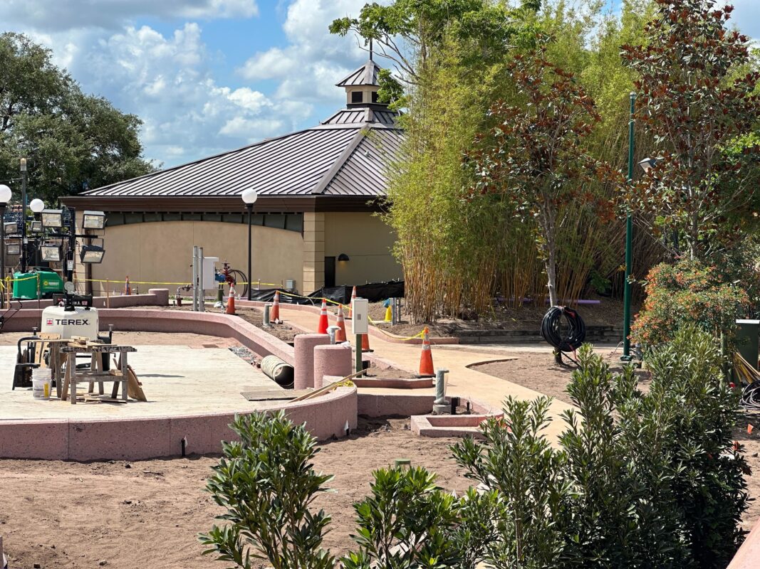 This flex space, located next to the Imagination! Pavilion, seems nearly complete. There are now clear paved walkways and a courtyard, but landscaping still needs to be done. Part of the space reopened with the Florida Fresh booth.