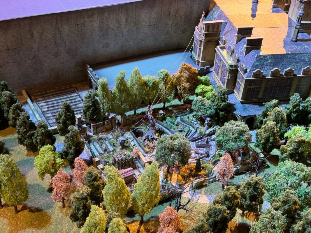 All of the Epic Universe concept art comes to life on the model. The model took nine months to complete and cost approximately $1 million. It was created by a team of 10 scenic artists and seven make-up artists, who painted the small details.