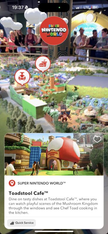 The AR feature on the Epic Universe Preview Center app also highlights Toadstool Cafe.