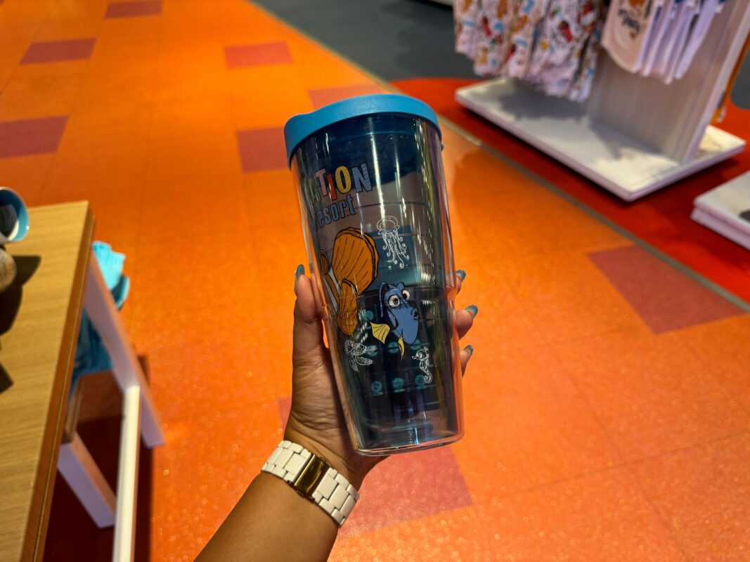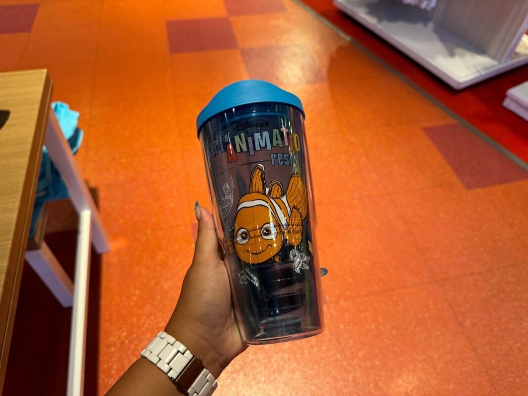 The new Art of Animation Tervis Tumbler is Nemo-centric, featuring the clownfish himself in color beneath the resort logo. The cup is a translucent blue.