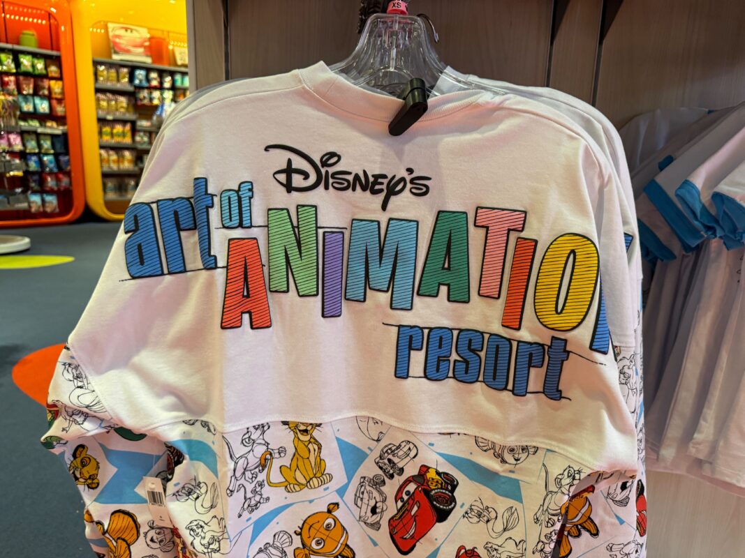 The back of the Spirit Jersey features the Disney’s Art of Animation Resort text logo in multicolor.