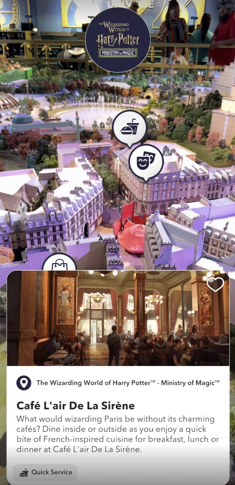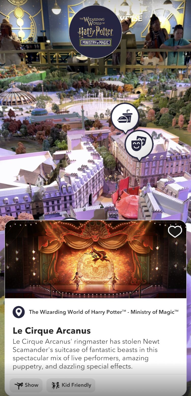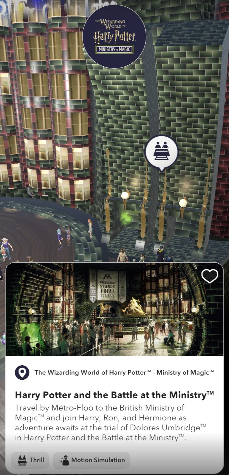 Finally, guests can get their first look inside the newest attraction coming to the land, Harry Potter and the Battle at the Ministry. AR gives guests a peek inside the building so they can see the queue and architecture that will lead to the new thrill ride.
