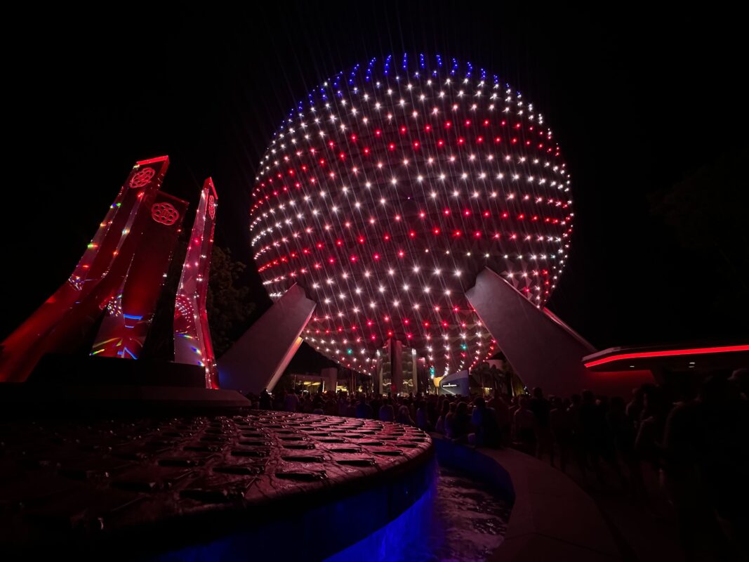 Spaceship Earth donned different designs in red, white, and blue. The park entrance fountain was also bathed in patriotic colors.